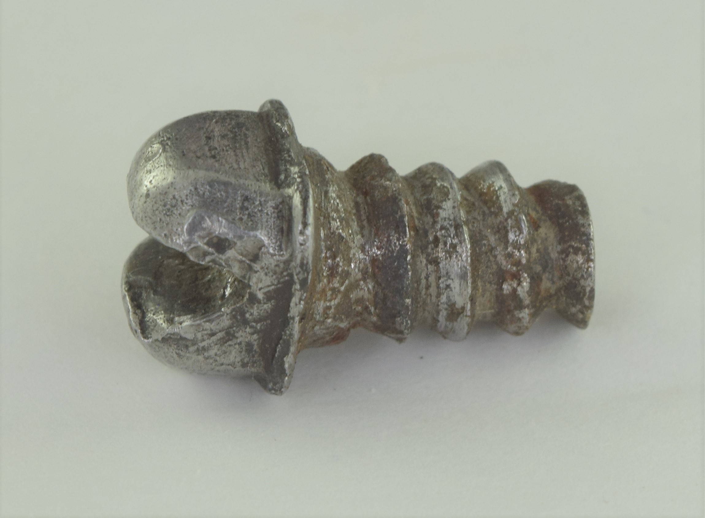 Thickness: The thickness of the upper breastplate is extremely variable, between .019 and .097 inch. I expect that some of the thickness has been lost due to cleaning. If there is any pattern at all to the thickness, it would appear that the upper thins some under the arms and in areas that might have been covered by a larger original plackart. Plackart .038-.068 inch thick, pretty randomly distributed. As a guess the lack of intentional thickness management appears to confirm that these parts were originally part of lower quality armours.