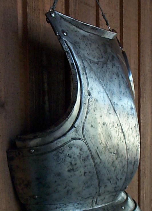 Profile of the breastplate. Similar to profiles normal for the mid century, but not really the most stylish. It is, however, exactly the profile of earlier 16th c. globose breastplates.